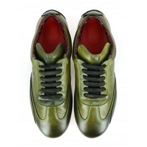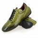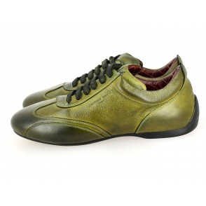 Chaussures de conduite basse en veau pleine fleur, patinées en pièce, lacées, intérieur en cuir matelassé.
