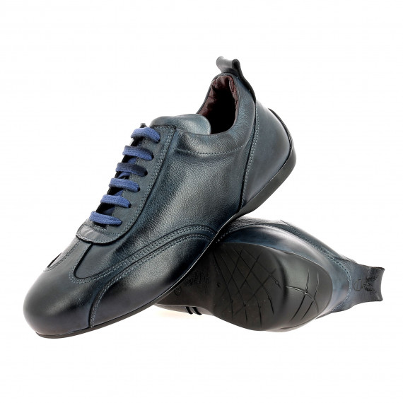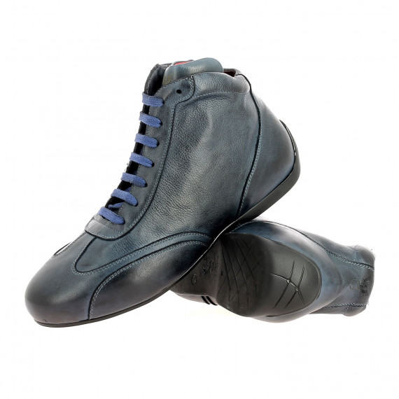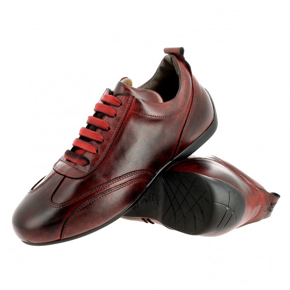 Low driving shoes in vintage full grain calfskin, laced, quilted leather interior.