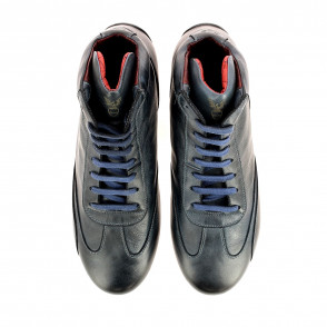 Retro inspired Mid-high driving shoes in vintage full grain calfskin, laced, quilted leather interior.