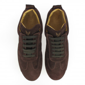 Low driving shoes in suede calfskin, laced, quilted leather interior.