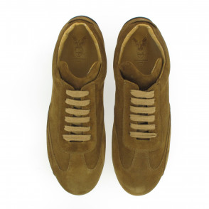 Lowdriving shoes in suede calfskin, laced, quilted leather interior, laced.